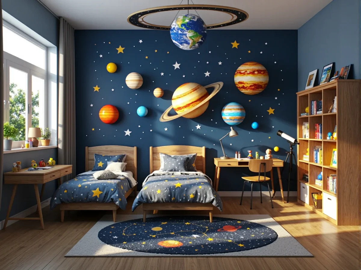 Fascynacja kosmosem jest naturalna dla wielu dzieci. Gwiazdy, planety i odległe galaktyki rozpalają wyobraźnię i zachęcają do zgłębiania tajemnic wszechświata. Stworzenie kosmicznego pokoju to zaproszenie do niezwykłej podróży. Centralnym punktem może stać się fototapeta z Układem Słonecznym lub sufity pokryte farbą fluorescencyjną z gwiazdozbiorami, które świecą w ciemności. Taka aranżacja naturalnie prowadzi do rozmów o astronomii. Dopełnieniem wystroju będą dodatki, które wzmocnią edukacyjny charakter przestrzeni.
